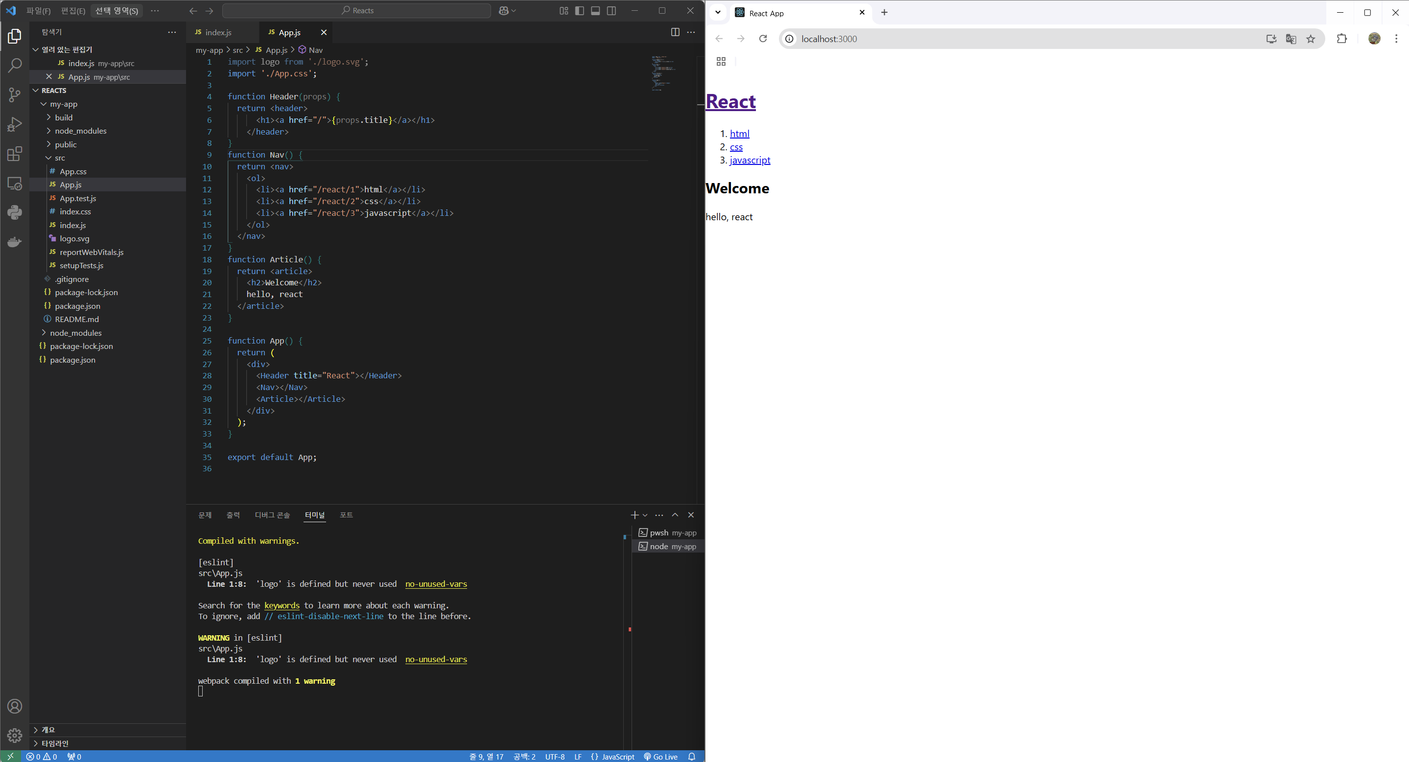 서론2024.12.21 - [Web framework/React] - React 시작하기 React 시작하기서론 백엔드 개발자 또한 최근에 React를 요구하는 기업이 늘어나고 있는 추새입니다. 이에 React를 공부해보고자 합니다. https://react